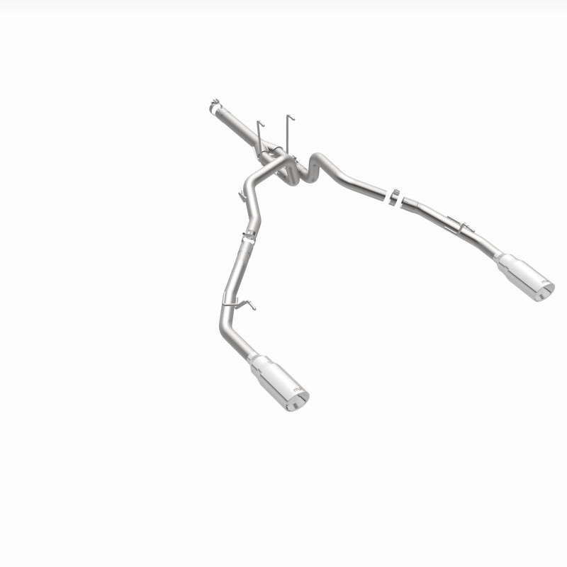 The MagnaFlow Ram 1500 Street Series 19359 has been designed from the ground up to make your 3.0L 2014-2018 Ram 1500 sound like and haul like it should thanks to its heavily dyno-tested, durable and corrosion resistant stainless steel design. This Ram 1500 exhaust kit is tuned to produce Moderate exterior and Mild interior sound levels through its fast-flowing, mandrel bent 3in. main piping and is compatible with 3.0L engines. The system terminates in a Dual Split Rear exit with 5in. Polished Welded-Double Wall-Angle Cut-Rolled Edge tip. Exhaust kit 19359 is tuned to produce our powerful, resonant signature exhaust note at Moderate exterior and Mild interior sound levels. It does this with a filter-back layout that replaces your diesel truck’s stock exhaust system from the particulate filter on back. Extensive 3D scans made during the development process has resulted in an easy-to-install, direct-fit design. Once you hit the road or trail with this exhaust system hooked up your rig will stand out from the rest as the truest of trucks. 19359 is produced using CNC precision robotic manufacturing techniques and is backed by MagnaFlow’s limited lifetime construction warranty.