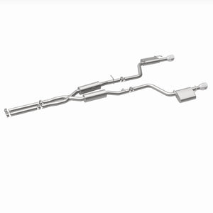 The MagnaFlow 2019-2023 Dodge Charger Street Series Cat-Back Performance Exhaust System 19522 brings out the personality of your 3.6L 2019-2023 Dodge Charger with our signature resonant, powerful engine tone and dyno-proven performance. Thanks to its fast-flowing, mandrel bent 2.5in. main piping and 4 Straight-Through mufflers ending in a Dual Split Rear exit with 4.5in. Polished Welded-On Double Wall Angle Cut Folded Edge tips, this Dodge Charger exhaust kit has the performance chops to match its sporty sound and appearance. Upgrade your ride to the next level with an exhaust that has the pipes to put other Dodge Charger's to shame. With this system your vehicle will be producing Moderate exterior and Mild interior sound levels while leaving other cars and trucks feeling envious at every stoplight. Exhaust kit 19522 features a cat-back layout that replaces your ride's stock exhaust components from near the catalytic converter on back. Extensive 3D scanning during development has resulted in a direct-fit design that you can easily install yourself. 19522 is produced using CNC precision robotic manufacturing techniques and is backed by MagnaFlow's 1-year limited finish warranty and limited lifetime construction warranty.