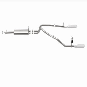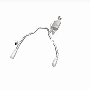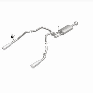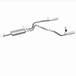 The MagnaFlow 2019-2024 Ram 1500 Street Series Cat-Back Performance Exhaust System 19498 brings out the personality of your 3.6L 2019-2023 Ram 1500 with our signature resonant, powerful engine tone and dyno-proven performance. Thanks to its fast-flowing, mandrel bent 2.5in. main piping and 1 Straight-Through mufflers ending in a Dual Split Rear exit with 5in. Polished Welded-On Double Wall Angle Cut Rolled Edge tips, this Ram 1500 exhaust kit has the performance chops to match its sporty sound and appearance. Upgrade your ride to the next level with an exhaust that has the pipes to put other Ram 1500's to shame. With this system your vehicle will be producing Aggressive exterior and Moderate interior sound levels while leaving other cars and trucks feeling envious at every stoplight. Exhaust kit 19498 features a cat-back layout that replaces your ride's stock exhaust components from near the catalytic converter on back. Extensive 3D scanning during development has resulted in a direct-fit design that you can easily install yourself. 19498 is produced using CNC precision robotic manufacturing techniques and is backed by MagnaFlow's 1-year limited finish warranty and limited lifetime construction warranty.