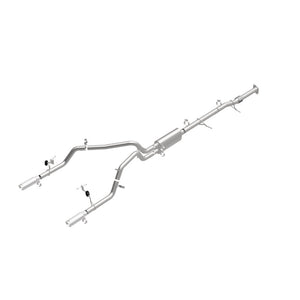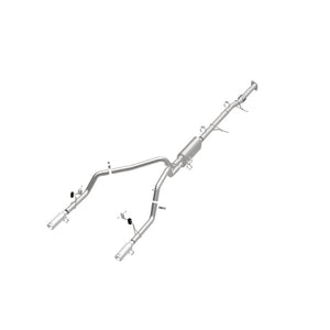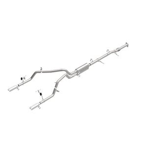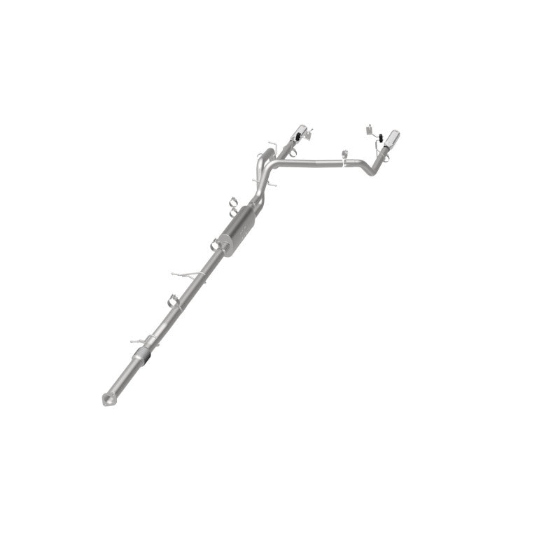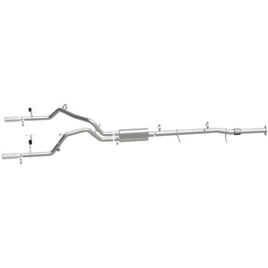 The MagnaFlow 2023 Chevrolet Colorado / GMC Canyon NEO Series Cat-Back Performance Exhaust System 19650 brings out the personality of your truck with our signature resonant, powerful engine tone and dyno-proven performance. MagnaFlow #19650 features fast-flowing, mandrel bent 3in. main piping, 1 straight-through muffler and a Dual Split Rear exit with 3.5in. polished stainless steel tips. This MagnaFlow truck exhaust kit has the performance chops to match its sporty sound and appearance. Elevate your truck to the next level with an exhaust that has the pipes to put other truck's to shame. With this exhaust system your truck will be producing moderate exterior and mild interior sound levels for a smooth and comfortable driving experience. Exhaust kit 19650 features a cat-back layout that replaces your truck’s stock exhaust components from near the catalytic converter on back. Extensive 3D scanning during development has resulted in a direct-fit exhaust design that you can easily install yourself. 19650 is produced using CNC precision robotic manufacturing techniques and is backed by MagnaFlow's 1-year limited finish warranty and limited lifetime construction warranty.