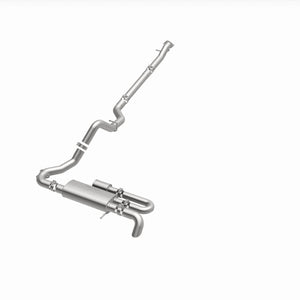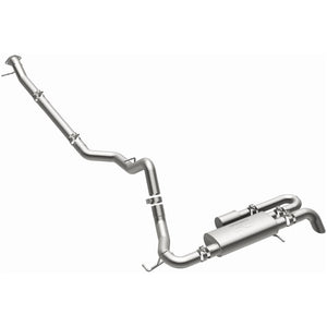 The MagnaFlow Ford Bronco Overland Series Cat-Back Performance Exhaust system #19556 is the perfect solution to further improve the off-road utility of your already-capable 2021-2025 Ford Bronco equipped with the 2.3L turbo I-4. This cat-back, direct-fit exhaust kit is designed to install easily and fit perfectly thanks to the hard work of the engineers at MagnaFlow’s Tech Center, who made detailed 3D scans of the entire vehicle in order to ensure perfect fitment. The advantage of such precise tolerances is that the entire performance exhaust system is mounted closer to the undercarriage of the vehicle than the stock system, resulting in significantly improved ground clearance. #19556 also features 3” main piping that leads to a straight-through muffler before terminating in a single 2.5” high-clearance side exit, which further improves the rear departure angle versus the standard tailpipe. The result of this upgrade is improved rock crawling capability and the ability to get out of tricky situations on the trail more easily. This Ford Bronco exhaust system utilizes a tunable NDT (No Drone Technology) quarter-wave resonator to eliminate unwanted noises at cruising speeds en route to your destination, with the added benefit of improving situational awareness when you’re out exploring or camping in the middle of nowhere. Exhaust kit #19556 is engineered to produce MagnaFlow’s deep signature exhaust tone at mild interior and moderate exterior sound levels, ideal for enjoying the character of your engine without scaring Mother Nature away. The exhaust system is built to last thanks to the use of precision CNC robotic manufacturing techniques and durable stainless-steel construction, all backed by MagnaFlow’s limited lifetime warranty.