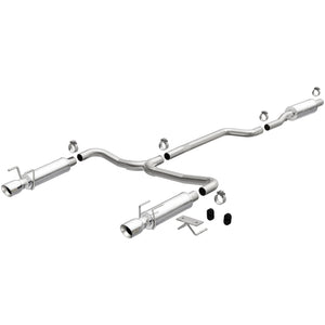 The MagnaFlow 2016-2019 Chevrolet Cruze Street Series Cat-Back Performance Exhaust System 19480 brings out the personality of your 1.4L 2016-2019 Chevrolet Cruze with our signature resonant, powerful engine tone and dyno-proven performance. Thanks to its fast-flowing, mandrel bent 2.25in. main piping and 3 Straight-Through mufflers ending in a Dual Split Rear exit with 3.5in. Polished Welded-On Double Wall Angle Cut Folded Edge tips, this Chevrolet Cruze exhaust kit has the performance chops to match its sporty sound and appearance. Upgrade your ride to the next level with an exhaust that has the pipes to put other Chevrolet Cruze's to shame. With this system your vehicle will be producing Moderate exterior and Mild interior sound levels while leaving other cars and trucks feeling envious at every stoplight. Exhaust kit 19480 features a cat-back layout that replaces your ride's stock exhaust components from near the catalytic converter on back. Extensive 3D scanning during development has resulted in a direct-fit design that you can easily install yourself. 19480 is produced using CNC precision robotic manufacturing techniques and is backed by MagnaFlow's 1-year limited finish warranty and limited lifetime construction warranty.
