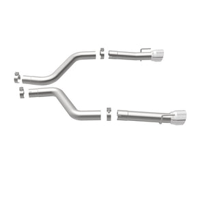 The MagnaFlow 2015-2023 Dodge Charger Race Series Axle-Back Performance Exhaust System 19235 doesn't leave any performance on the table with a race-ready, light weight, dyno-proven design ready to help your 6.2L, 6.4L 2015-2023 Dodge Charger take on any pretenders, whether on the track or the street. Exhaust kit 19235 is engineered to produce our powerful, resonant signature exhaust note at Very Aggressive exterior and Aggressive interior sound levels with an axle-back layout that replaces your vehicle's exhaust components from near the rear axle on back. Please check to ensure compliance with local noise regulations. This Dodge Charger exhaust kit features fast-flowing mandrel bent 3in. diameter main piping that ends in a Dual Split Rear exit with 4.5in. Polished Welded-On Double Wall Angle Cut Folded Edge tips. Extensive 3D scanning during development and the use of advanced CNC precision robotic manufacturing techniques ensures that 19235's direct-fit design fits so perfectly that you can easily install the system yourself. The durable, corrosion resistant stainless steel construction of exhaust system 19235 is backed by MagnaFlow's limited lifetime warranty.