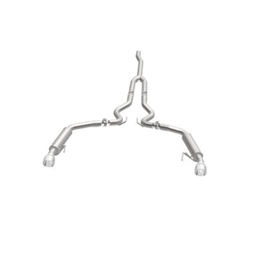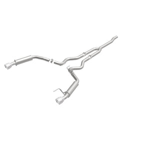 The MagnaFlow 2015-2023 Ford Mustang Competition Series Cat-Back Performance Exhaust System brings an aggressive, attention-grabbing edge to the deep resonant exhaust note we're so well known for. This Ford Mustang cat-back exhaust kit is designed to enhance your 2.3L 2015-2023 Ford Mustang with dyno-proven performance made possible thanks to fast-flowing mandrel bent 2.5in. diameter piping that passes 2 Straight-Through mufflers ending in a Dual Split Rear exit with 4.5in. Black Coated Welded-On Double Wall Angle Cut Folded Edge tips featuring a sporty black powder-coated finish. The direct-fit design allows for an easy, do-it-yourself installation process. Exhaust system 19256 is engineered to make your Ford Mustang's engine produce Moderate interior and Aggressive exterior sound levels, befitting its competition-oriented design. 19256 is made of 100% durable and corrosion-resistant stainless steel and produced using CNC precision robotic manufacturing, all backed by MagnaFlow's 1-year limited finish warranty and limited lifetime construction warranty. Please check to ensure compliance with local noise regulations.