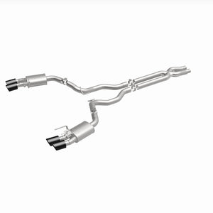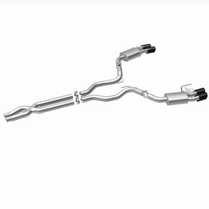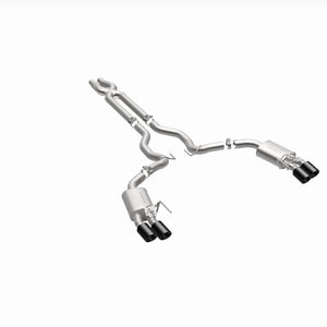 The MagnaFlow 2015-2020 Ford Mustang Competition Series Cat-Back Performance Exhaust System 19299 brings an aggressive, attention-grabbing edge to the deep resonant exhaust note we're so well known for. This cat-back exhaust kit is designed to enhance your 5.2L 2015-2020 Ford Mustang with dyno-proven performance made possible thanks to fast-flowing mandrel bent 3in. diameter piping that passes 2 Straight-Through mufflers ending in a Quad Split Rear exit with 4in. Welded-On Double Wall Angle Cut Rolled Edge carbon fiber tips. The direct-fit design allows for an easy, do-it-yourself installation process. Exhaust system 19299 is engineered to make your Ford Mustang's engine produce Moderate interior and Aggressive exterior sound levels, befitting its competition-oriented design. 19299's direct-fit design makes installation a breeze thanks to the use of advanced 3D scanning techniques. This muscle car exhaust system is made of 100% durable and corrosion-resistant stainless steel and produced using CNC precision robotic manufacturing, all backed by MagnaFlow's limited lifetime construction warranty. Please check to ensure compliance with local noise regulations.