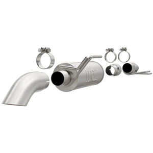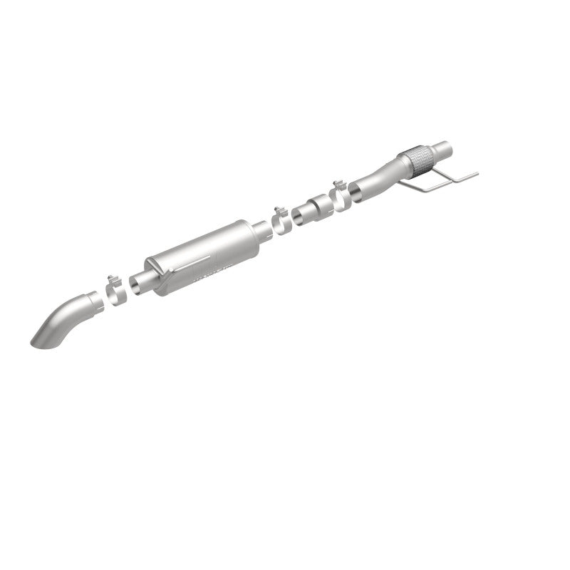 The MagnaFlow 2015-2020 Ford F-150 Off-Road Pro Series Cat-Back Performance Exhaust System 19056 brings additional off-roading prowess and our deep signature exhaust note to your 2.7L, 3.5L 2015-2020 Ford F-150 with a weight-optimized, dyno-tested, corrosion resistant and durable stainless steel design engineered to closely hug the undercarriage for improved ground clearance. Exhaust kit 19056 is engineered to produce Very Aggressive exterior and Aggressive interior sound levels. Extensive 3D scanning was used during the development of this Ford F-150 exhaust system to create a direct-fit design, enabling a do-it-yourself installation process. 19056's emissions-legal cat-back design replaces all your truck's exhaust components from the catalytic converter on back with its 3in. diameter mandrel bent main piping that passes through 1 Straight-Through mufflers before ending in a turndown before rear axle exit with 3in. Satin Clamp-On Single Wall Turndown Cut Edge tips. Exhaust system 19056 is produced using advanced CNC precision robotic manufacturing techniques and backed by MagnaFlow's limited lifetime warranty.