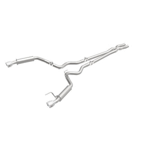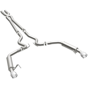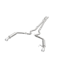 The MagnaFlow 2015-2017 Ford Mustang Competition Series Cat-Back Performance Exhaust System 19099 brings an aggressive, attention-grabbing edge to the deep resonant exhaust note we're so well known for. This exhaust kit is designed to enhance your 3.7L 2015-2017 Ford Mustang with dyno-proven performance made possible thanks to fast-flowing mandrel bent 2.5in. main piping and 2 Straight-Through mufflers ending in a Dual Split Rear exit with 4.5in. Polished Welded-On Double Wall Angle Cut Folded Edge tips featuring a sporty finish. The exhaust system's cat-back layout replaces your ride's exhaust system from near the catalytic converter on back. Exhaust system 19099 is engineered to make your vehicle's engine produce Aggressive exterior and Moderate interior sound levels, befitting its competition-oriented design. 19099's direct-fit design makes installation a breeze thanks to the use of advanced 3D scanning techniques. This performance exhaust system is made of 100% durable and corrosion-resistant stainless steel and produced using CNC precision robotic manufacturing, all backed by MagnaFlow's limited lifetime warranty. Please check to ensure compliance with local noise regulations.