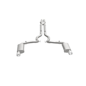 The MagnaFlow 2015-2017 Ford Mustang Street Series Cat-Back Performance Exhaust System 19100 brings out the personality of your 5.0L 2015-2017 Ford Mustang with our signature resonant, powerful engine tone and dyno-proven performance. Thanks to its fast-flowing, mandrel bent 3in. main piping and 2 Straight-Through mufflers ending in a Dual Split Rear exit with 4.5in. Polished Welded-On Double Wall Angle Cut Folded Edge tips, this Ford Mustang exhaust kit has the performance chops to match its sporty sound and appearance. Upgrade your ride to the next level with an exhaust that has the pipes to put other Ford Mustang's to shame. With this system your vehicle will be producing Moderate exterior and Mild interior sound levels while leaving other cars and trucks feeling envious at every stoplight. Exhaust kit 19100 features a cat-back layout that replaces your ride's stock exhaust components from near the catalytic converter on back. Extensive 3D scanning during development has resulted in a direct-fit design that you can easily install yourself. 19100 is produced using CNC precision robotic manufacturing techniques and is backed by MagnaFlow's 1-year limited finish warranty and limited lifetime construction warranty.