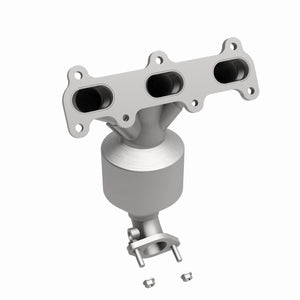 Keep the check engine light off with MagnaFlow OEM Grade Federal/EPA Compliant Direct-Fit Catalytic Converter 51000. With features including free-flowing mandrel-bent tubing and highly corrosion resistant stainless steel construction, easily install this spun body converter yourself using the proper tools, no cutting or welding required. MagnaFlow's state-of-the-art metrology department uses the latest 3D scanning systems during research and development, so you can be confident that your new part will fit and function like the original equipment. By replicating the OE spun body design, the single laser fusion weld greatly reduces the possibility of a leak, and our compact, low-mass design also allows for greater thermal efficiency. This direct-fit catalytic converter is designed specifically for the 2001-2004 Hyundai Santa Fe and interchanges with OE parts 28510-37281 and 28510-37440. The included gaskets & hardware reduce the possibility of a leaking seal while avoiding the need to reuse corroded factory parts for installation. This replacement part is designed to meet or exceed Federal emissions requirements set forth by the EPA, complying with legal standards for OBDII Federally registered vehicles with California or Federal/EPA Emission systems.