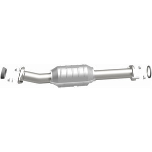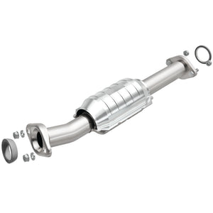 Keep the check engine light off with MagnaFlow HM Grade Federal/EPA Compliant Direct-Fit Catalytic Converter 24366. With features including free-flowing mandrel-bent tubing and highly corrosion resistant stainless steel construction, easily install this spun body converter yourself using the proper tools, no cutting or welding required. MagnaFlow's state-of-the-art metrology department uses the latest 3D scanning systems during research and development, so you can be confident that your new part will fit and function like the original equipment. By replicating the OE spun body design, the single laser fusion weld greatly reduces the possibility of a leak, and our compact, low-mass design also allows for greater thermal efficiency. This direct-fit catalytic converter is designed specifically for the 2002 Suzuki Aerio and interchanges with OE part 14250-54G30. The included gaskets & hardware reduce the possibility of a leaking seal while avoiding the need to reuse corroded factory parts for installation. This replacement part is designed to meet or exceed Federal emissions requirements set forth by the EPA, complying with legal standards for OBDII Federally registered vehicles with Federal/EPA Emission systems.