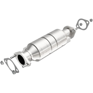 Keep the check engine light off with MagnaFlow OEM Grade Federal/EPA Compliant Direct-Fit Catalytic Converter 51332. With features including free-flowing mandrel-bent tubing and highly corrosion resistant stainless steel construction, easily install this spun body converter yourself using the proper tools, no cutting or welding required. MagnaFlow's state-of-the-art metrology department uses the latest 3D scanning systems during research and development, so you can be confident that your new part will fit and function like the original equipment. By replicating the OE spun body design, the single laser fusion weld greatly reduces the possibility of a leak, and our compact, low-mass design also allows for greater thermal efficiency. Designed to fit the 2004-2009 Kia Spectra, 2004-2006 Hyundai Elantra, and more, this direct-fit catalytic converter also interchanges with OE parts 28950-23940 and 28950-23960. The included gaskets & hardware reduce the possibility of a leaking seal while avoiding the need to reuse corroded factory parts for installation. This replacement part is designed to meet or exceed Federal emissions requirements set forth by the EPA, complying with legal standards for OBDII Federally registered vehicles with California or Federal/EPA Emission systems.