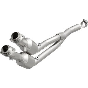 Keep the check engine light off with MagnaFlow HM Grade Federal/EPA Compliant Direct-Fit Catalytic Converter 23069. With features including free-flowing mandrel-bent tubing and highly corrosion resistant stainless steel construction, easily install this spun body converter yourself using the proper tools, no cutting or welding required. MagnaFlow's state-of-the-art metrology department uses the latest 3D scanning systems during research and development, so you can be confident that your new part will fit and function like the original equipment. By replicating the OE spun body design, the single laser fusion weld greatly reduces the possibility of a leak, and our compact, low-mass design also allows for greater thermal efficiency. This direct-fit catalytic converter is designed specifically for the 1993-1996 Jaguar XJS and interchanges with OE parts JLM20704 and CBC7313, among others. Hardware is included to eliminate the hassle of working with corroded factory parts. This replacement part is designed to meet or exceed Federal emissions requirements set forth by the EPA, complying with legal standards for OBDII Federally registered vehicles with Federal/EPA Emission systems.