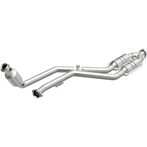 Keep the check engine light off with MagnaFlow HM Grade Federal/EPA Compliant Direct-Fit Catalytic Converter 24044. With features including free-flowing mandrel-bent tubing and highly corrosion resistant stainless steel construction, easily install this spun body converter yourself using the proper tools, no cutting or welding required. MagnaFlow's state-of-the-art metrology department uses the latest 3D scanning systems during research and development, so you can be confident that your new part will fit and function like the original equipment. By replicating the OE spun body design, the single laser fusion weld greatly reduces the possibility of a leak, and our compact, low-mass design also allows for greater thermal efficiency. Designed to fit the 1998-2002 Mercedes-Benz CLK320, 2001-2003 Mercedes-Benz CLK430, and more, this direct-fit catalytic converter also interchanges with OE parts 202 490 52 20 80 and 208 490 04 20 80, among others. Hardware is included to eliminate the hassle of working with corroded factory parts. This replacement part is designed to meet or exceed Federal emissions requirements set forth by the EPA, complying with legal standards for OBDII Federally registered vehicles with Federal/EPA Emission systems.