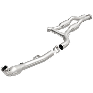 Keep the check engine light off with MagnaFlow HM Grade Federal/EPA Compliant Direct-Fit Catalytic Converter 24334. With features including free-flowing mandrel-bent tubing and highly corrosion resistant stainless steel construction, easily install this spun body converter yourself using the proper tools, no cutting or welding required. MagnaFlow's state-of-the-art metrology department uses the latest 3D scanning systems during research and development, so you can be confident that your new part will fit and function like the original equipment. By replicating the OE spun body design, the single laser fusion weld greatly reduces the possibility of a leak, and our compact, low-mass design also allows for greater thermal efficiency. Designed to fit the 2003-2006 Mercedes-Benz E55 AMG and 2006 Mercedes-Benz CLS55 AMG, this direct-fit catalytic converter also interchanges with OE parts 211 490 25 19 and 211 490 25 19 05, among others. Hardware is included to eliminate the hassle of working with corroded factory parts. This replacement part is designed to meet or exceed Federal emissions requirements set forth by the EPA, complying with legal standards for OBDII Federally registered vehicles with Federal/EPA Emission systems.
