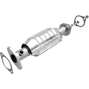Keep the check engine light off with MagnaFlow OEM Grade Federal/EPA Compliant Direct-Fit Catalytic Converter 49102. With features including free-flowing mandrel-bent tubing and highly corrosion resistant stainless steel construction, easily install this spun body converter yourself using the proper tools, no cutting or welding required. MagnaFlow's state-of-the-art metrology department uses the latest 3D scanning systems during research and development, so you can be confident that your new part will fit and function like the original equipment. By replicating the OE spun body design, the single laser fusion weld greatly reduces the possibility of a leak, and our compact, low-mass design also allows for greater thermal efficiency. This direct-fit catalytic converter is designed specifically for the 2002-2003 Mitsubishi Lancer. The included gaskets & hardware reduce the possibility of a leaking seal while avoiding the need to reuse corroded factory parts for installation. This replacement part is designed to meet or exceed Federal emissions requirements set forth by the EPA, complying with legal standards for OBDII Federally registered vehicles with California or Federal/EPA Emission systems.
