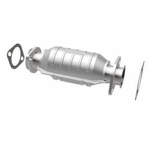 Keep the check engine light off with MagnaFlow Standard Grade Federal/EPA Compliant Direct-Fit Catalytic Converter 22764. With features including free-flowing mandrel-bent tubing and highly corrosion resistant stainless steel construction, easily install this spun body converter yourself using the proper tools, no cutting or welding required. MagnaFlow's state-of-the-art metrology department uses the latest 3D scanning systems during research and development, so you can be confident that your new part will fit and function like the original equipment. By replicating the OE spun body design, the single laser fusion weld greatly reduces the possibility of a leak, and our compact, low-mass design also allows for greater thermal efficiency. This direct-fit catalytic converter is designed to fit the 1988-1989 Nissan D21, 1987-1989 Nissan Stanza, and additional vehicles. Avoid potential exhaust leaks by using the included gaskets to get a proper seal. This replacement part is designed to meet or exceed Federal emissions requirements set forth by the EPA, complying with legal standards for pre-OBDII Federally registered vehicles.