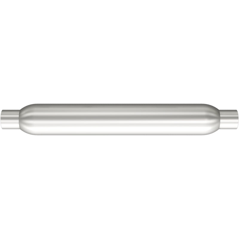 The MagnaFlow 3.5in. Round Glasspack Performance Exhaust Muffler 18145 enhances your ride with the deep, classic sound that glasspack mufflers are known for. The round muffler body features a free-flowing reversible straight-through 2.25/2.25in. diameter configuration and single stage packing with a satin finish. This weight-optimized glasspack muffler is engineered to bring out the inner hot rod in your ride with plenty of volume and dyno-proven performance, so please check to ensure compliance with local noise regulations. 18145 offers flexibility when it comes to installation thanks to its universal design, however, professional installation is recommended. Muffler 18145 is made of corrosion resistant aluminized steel and produced using CNC precision robotic manufacturing techniques, all backed by MagnaFlow's 90-day limited construction warranty.