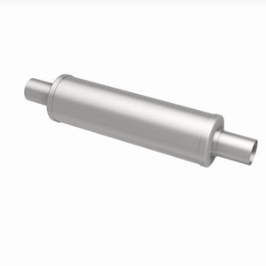 The MagnaFlow 4in. Round Straight-Through Performance Exhaust Muffler 10444 brings our world-famous exhaust sound and dyno-proven performance to your ride in a weight-optimized 4x4x14in. package with a premium satin finish. The straight-through free-flowing design of this round-bodied muffler's reversible, universal 2/2in. diameter inlet/outlet layout enables versatile installation options to match the spacing requirements of your vehicle. Due to the cutting and welding involved, professional installation is highly recommended. Internally, 10444 utilizes a perforated stainless steel core wrapped in stainless steel mesh and acoustic fiber fill to achieve a powerful, resonant tone. This muffler is made of durable, corrosion resistant stainless steel and produced using cutting-edge CNC precision robotic manufacturing techniques, all backed by MagnaFlow's limited lifetime construction warranty.