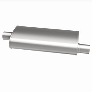 The MagnaFlow XL 4 X 9in. Oval Multi-Chamber Performance Exhaust Muffler 13256 features a straight-through, weight-optimized reversible design with a perforated stainless steel core featuring baffles and tuning gates, enabling it to deliver the powerful signature sound and dyno-proven performance that's made MagnaFlow a household name. Muffler 13256's oval-shaped, 4x9x18in. body and universal 2.5/2.5in. diameter inlet/outlet layout enables flexible installation options to match the spacing requirements of your vehicle. Professional installation is highly recommended. 13256 is produced using advanced CNC precision robotic manufacturing techniques and features durable, corrosion resistant stainless-steel construction, all backed by MagnaFlow's limited lifetime warranty.