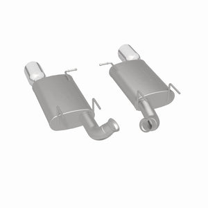 The MagnaFlow 2011-2012 Ford Mustang Street Series Axle-Back Performance Exhaust System 15595 brings enhanced engine sound and dyno-proven performance to your 3.7L 2011-2012 Ford Mustang with a healthy helping of our deep, resonant signature exhaust note at Moderate exterior and Mild interior sound levels. Thanks to its durable, corrosion resistant stainless steel design, this Ford Mustang exhaust system will handle whatever tarmac you decide to leave your mark on. This performance exhaust kit features an axle-back layout designed to replace your Ford Mustang's exhaust system from near the rear axle on back. With its fast-flowing, mandrel bent 2.5in. main piping and 2 Straight-Through mufflers ending in a Dual Split Rear exit with 4in. Polished Welded-On Double Wall Angle Cut Rolled Edge tips, your ride will be sounding as awesome as it looks. Extensive 3D scanning during development has resulted in a direct-fit design that you can easily install yourself. 15595 is produced using CNC precision robotic manufacturing techniques and is backed by MagnaFlow's 1-year limited finish warranty and limited lifetime construction warranty.