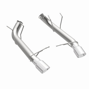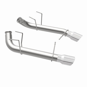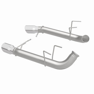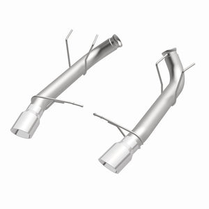 The MagnaFlow 2011-2012 Ford Mustang Race Series Axle-Back Performance Exhaust System 15594 doesn't leave any performance on the table with a race-ready, light weight, dyno-proven design ready to help your 5.0L, 5.4L 2011-2012 Ford Mustang take on any pretenders, whether on the track or the street. Exhaust kit 15594 is engineered to produce our powerful, resonant signature exhaust note at Very Aggressive exterior and Aggressive interior sound levels with an axle-back layout that replaces your vehicle's exhaust components from near the rear axle on back. Please check to ensure compliance with local noise regulations. This Ford Mustang exhaust kit features fast-flowing mandrel bent 3in. diameter main piping that ends in a Dual Split Rear exit with 4in. Polished Welded-On Double Wall Angle Cut Folded Edge tips. Extensive 3D scanning during development and the use of advanced CNC precision robotic manufacturing techniques ensures that 15594's direct-fit design fits so perfectly that you can easily install the system yourself. The durable, corrosion resistant stainless steel construction of exhaust system 15594 is backed by MagnaFlow's limited lifetime warranty.