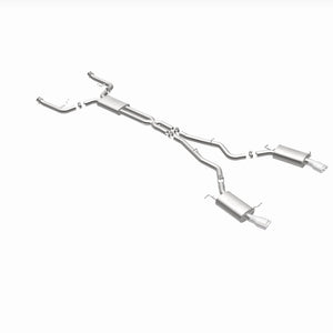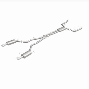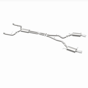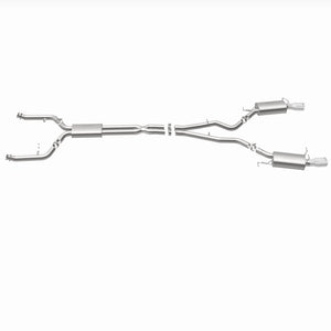 The MagnaFlow Touring Series Cat-Back Performance Exhaust System 16560 is the perfect partner for your 4.4L, 4.8L 2004-2010 BMW to take on a grand tour or a weekend cruise thanks to the powerful, resonant exhaust note and dyno-proven performance it brings to the table. This durable, corrosion resistant stainless steel exhaust kit is engineered to conquer the miles with ease while enhancing your driving experience with Moderate exterior and Mild interior sound levels generated through its fast-flowing, mandrel bent 2.5in. main piping and 3 Straight-Through muffler that terminate in a Dual Split Rear exit with 3.25 x 4.75in. Polished Welded-On Double Wall Straight Cut Rolled Edge tips. 16560 features a cat-back layout design to replace your import's stock exhaust components from the catalytic converter on back. This BMW exhaust system is compatible with 2004-2010 engines. The use of extensive 3D scans made during the development process has resulted in an easy-to-install, direct-fit design that fits your BMW like a glove. 16560 is produced using CNC precision robotic manufacturing techniques and is backed by MagnaFlow's limited lifetime construction warranty.