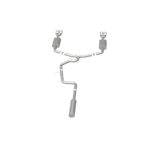 The MagnaFlow 2005-2008 Pontiac Grand Prix Street Series Cat-Back Performance Exhaust System 16726 brings out the personality of your 5.3L 2005-2008 Pontiac Grand Prix with our signature resonant, powerful engine tone and dyno-proven performance. Thanks to its fast-flowing, mandrel bent 2.5in. main piping and 3 Straight-Through mufflers ending in a Quad Split Rear exit with 4in. Polished Welded-On Double Wall Angle Cut Rolled Edge tips, this Pontiac Grand Prix exhaust kit has the performance chops to match its sporty sound and appearance. Upgrade your ride to the next level with an exhaust that has the pipes to put other Pontiac Grand Prix's to shame. With this system your vehicle will be producing Moderate exterior and Mild interior sound levels while leaving other cars and trucks feeling envious at every stoplight. Exhaust kit 16726 features a cat-back layout that replaces your ride's stock exhaust components from near the catalytic converter on back. Extensive 3D scanning during development has resulted in a direct-fit design that you can easily install yourself. 16726 is produced using CNC precision robotic manufacturing techniques and is backed by MagnaFlow's 1-year limited finish warranty and limited lifetime construction warranty.