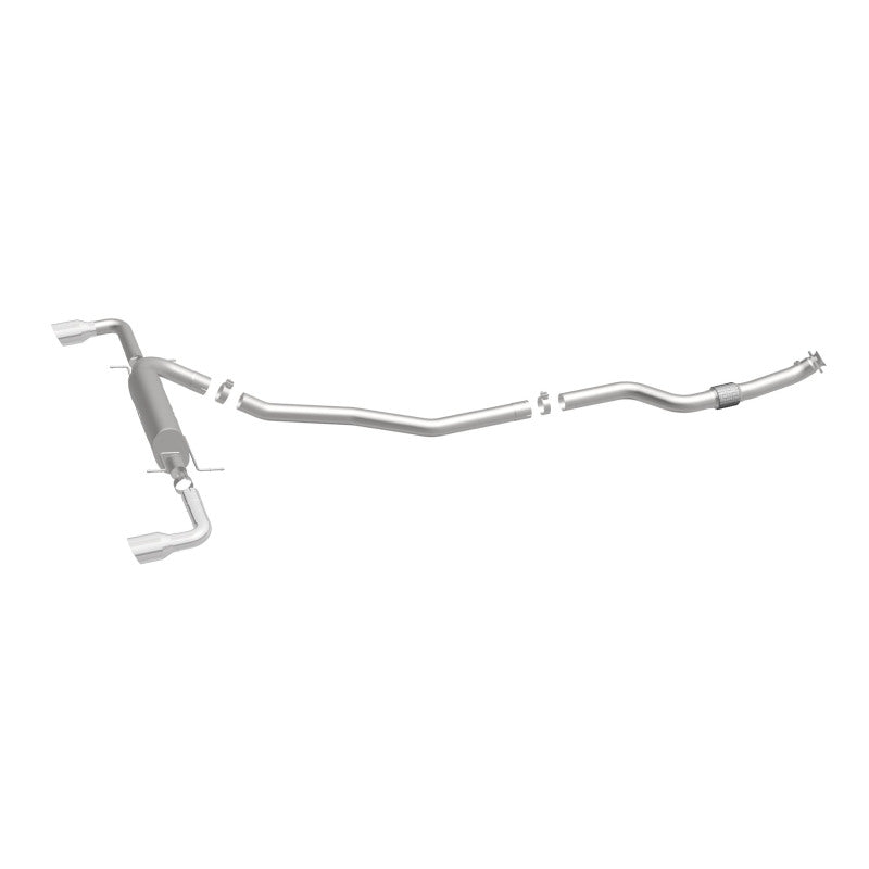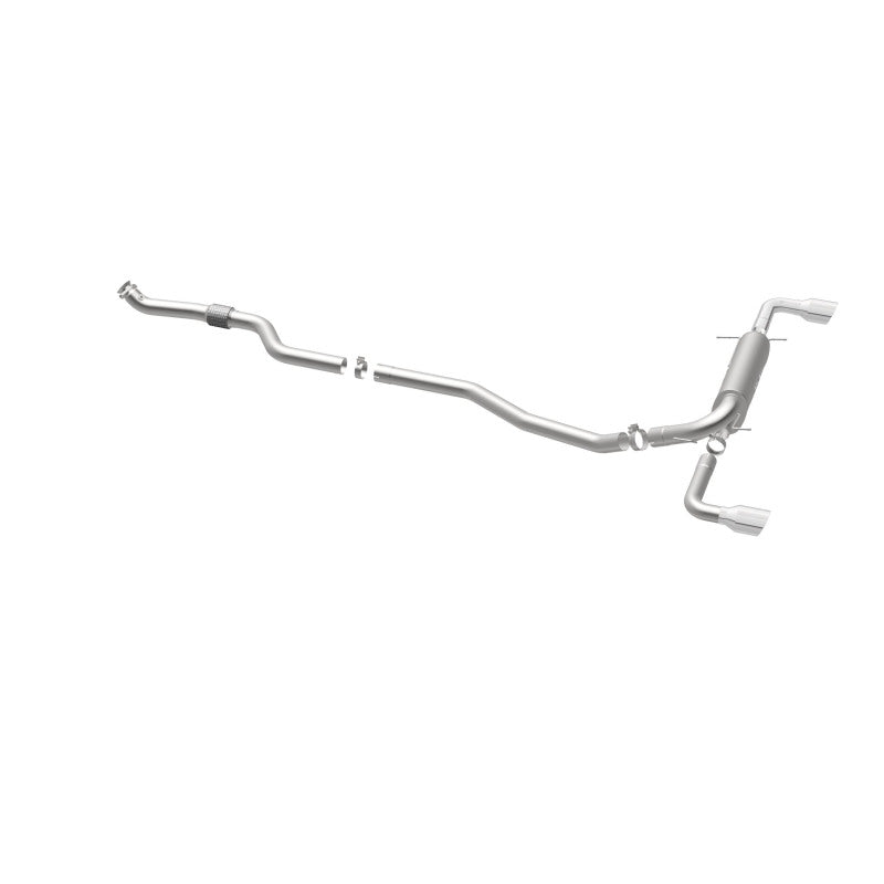 The MagnaFlow 2007-2009 Pontiac Solstice Street Series Cat-Back Performance Exhaust System 16645 brings out the personality of your 2.0L 2007-2009 Pontiac Solstice with our signature resonant, powerful engine tone and dyno-proven performance. Thanks to its fast-flowing, mandrel bent 3in. main piping and 1 Straight-Through mufflers ending in a Dual Split Rear exit with 4in. Polished Welded-On Double Wall Angle Cut Folded Edge tips, this Pontiac Solstice exhaust kit has the performance chops to match its sporty sound and appearance. Upgrade your ride to the next level with an exhaust that has the pipes to put other Pontiac Solstice's to shame. With this system your vehicle will be producing Moderate exterior and Mild interior sound levels while leaving other cars and trucks feeling envious at every stoplight. Exhaust kit 16645 features a cat-back layout that replaces your ride's stock exhaust components from near the catalytic converter on back. Extensive 3D scanning during development has resulted in a direct-fit design that you can easily install yourself. 16645 is produced using CNC precision robotic manufacturing techniques and is backed by MagnaFlow's 1-year limited finish warranty and limited lifetime construction warranty.