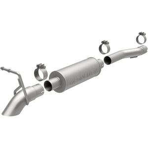 The MagnaFlow 2007-2011 Jeep Wrangler Off-Road Pro Series Cat-Back Performance Exhaust System 17119 brings additional off-roading prowess and our deep signature exhaust note to your 3.8L 2007-2011 Jeep Wrangler with a weight-optimized, dyno-tested, corrosion resistant and durable stainless steel design engineered to closely hug the undercarriage for improved ground clearance. Exhaust kit 17119 is engineered to produce Very Aggressive exterior and Aggressive interior sound levels. Extensive 3D scanning was used during the development of this Jeep Wrangler exhaust system to create a direct-fit design, enabling a do-it-yourself installation process. 17119's emissions-legal cat-back design replaces all your truck's exhaust components from the catalytic converter on back with its 2.5in. diameter mandrel bent main piping that passes through 1 Straight-Through mufflers before ending in a turndown before rear axle exit with 3in. Satin Clamp-On Single Wall Turndown Cut Edge tips. Exhaust system 17119 is produced using advanced CNC precision robotic manufacturing techniques and backed by MagnaFlow's limited lifetime warranty.