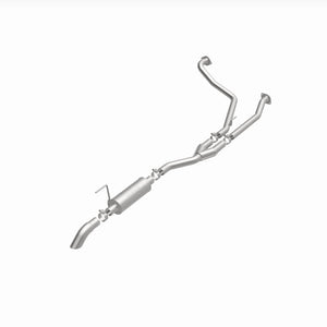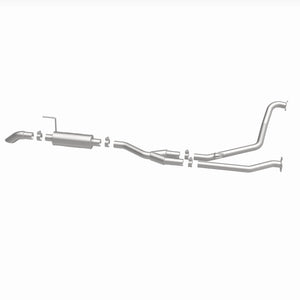 The MagnaFlow 2007-2015 Nissan Titan Off-Road Pro Series Cat-Back Performance Exhaust System 17109 brings additional off-roading prowess and our deep signature exhaust note to your 5.6L 2007-2015 Nissan TITAN with a weight-optimized, dyno-tested, corrosion resistant and durable stainless steel design engineered to closely hug the undercarriage for improved ground clearance. Exhaust kit 17109 is engineered to produce Very Aggressive exterior and Aggressive interior sound levels. Extensive 3D scanning was used during the development of this Nissan TITAN exhaust system to create a direct-fit design, enabling a do-it-yourself installation process. 17109's emissions-legal cat-back design replaces all your truck's exhaust components from the catalytic converter on back with its 2.5in. diameter mandrel bent main piping that passes through 1 Straight-Through mufflers before ending in a turndown before rear axle exit with 3in. Satin Clamp-On Single Wall Turndown Cut Edge tips. Exhaust system 17109 is produced using advanced CNC precision robotic manufacturing techniques and backed by MagnaFlow's limited lifetime warranty.