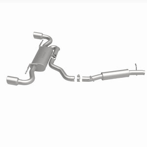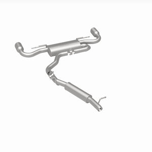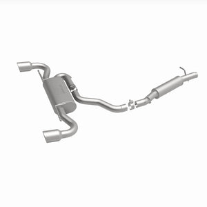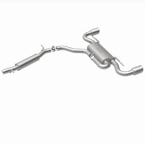The MagnaFlow 2008-2009 Audi TT Quattro Sport Series Cat-Back Performance Exhaust System 16994 enhances your 3.2L 2008-2009 Audi TT Quattro with an aggressive character that is sure to help you stand out from the other Audi TT Quattro you encounter on the street. With its 2.5in. diameter fast-flowing mandrel bent main piping that passes through 2 Straight-Through mufflers before ending in a Dual Split Rear exit with 4in. Polished Welded-On Double Wall Angle Cut Rolled Edge tips, this dyno-proven Audi TT Quattro exhaust system refuses to be ignored. As such, 16994 is tuned to produce our powerful, resonant signature exhaust note at Aggressive exterior and Moderate interior sound levels, so please check to ensure compliance with local noise regulations. The system's cat-back design replaces all your import's stock exhaust components from the catalytic converter on back. Extensive 3D scanning and CNC precision robotic manufacturing techniques are used to ensure that your exhaust system fits perfectly with just a simple do-it-yourself installation process. The durable, corrosion resistant stainless steel construction of 16994 is backed by MagnaFlow's limited lifetime warranty.