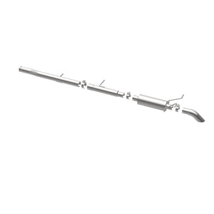 The MagnaFlow Off-Road Pro Series Cat-Back Performance Exhaust System 17102 brings additional off-roading prowess and our deep signature exhaust note to your Truck with a weight-optimized, dyno-tested, corrosion resistant and durable stainless steel design engineered to closely hug the undercarriage for improved ground clearance. Exhaust kit 17102 is engineered to produce Very Aggressive exterior and Aggressive interior sound levels. Extensive 3D scanning was used during the development of this Truck exhaust system to create a direct-fit design, enabling a do-it-yourself installation process. 17102's emissions-legal cat-back design replaces all your truck's exhaust components from the catalytic converter on back with its 3in. diameter mandrel bent main piping that passes through 1 Straight-Through mufflers before ending in a turndown before rear axle exit with 3in. Satin Clamp-On Single Wall Turndown Cut Edge tips. Exhaust system 17102 is produced using advanced CNC precision robotic manufacturing techniques and backed by MagnaFlow's limited lifetime warranty.