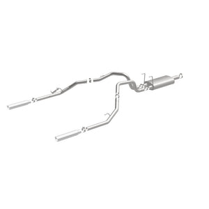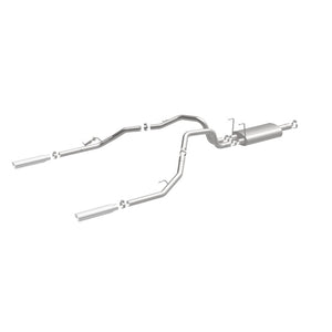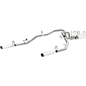 The MagnaFlow Street Series Cat-Back Performance Exhaust System 16870 brings out the personality of your Truck with our signature resonant, powerful engine tone and dyno-proven performance. Thanks to its fast-flowing, mandrel bent 3in. main piping and 1 Straight-Through mufflers ending in a Dual Split Rear exit with 3.5in. Polished Clamp-On Single Wall Angle Cut Rolled Edge tips, this Truck exhaust kit has the performance chops to match its sporty sound and appearance. Upgrade your ride to the next level with an exhaust that has the pipes to put other Truck's to shame. With this system your vehicle will be producing Aggressive exterior and Moderate interior sound levels while leaving other cars and trucks feeling envious at every stoplight. Exhaust kit 16870 features a cat-back layout that replaces your ride's stock exhaust components from near the catalytic converter on back. Extensive 3D scanning during development has resulted in a direct-fit design that you can easily install yourself. 16870 is produced using CNC precision robotic manufacturing techniques and is backed by MagnaFlow's 1-year limited finish warranty and limited lifetime construction warranty.