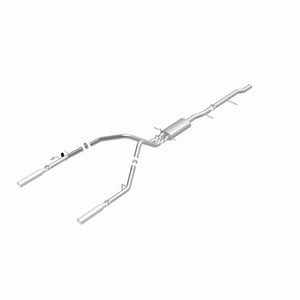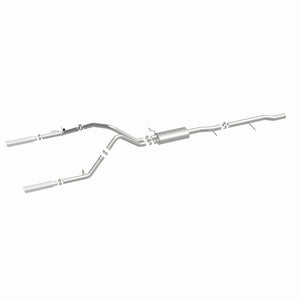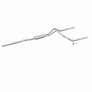 The MagnaFlow Street Series Cat-Back Performance Exhaust System 15565 brings out the personality of your Truck with our signature resonant, powerful engine tone and dyno-proven performance. Thanks to its fast-flowing, mandrel bent 3in. main piping and 1 Straight-Through mufflers ending in a Dual Split Rear exit with 3.5in. Polished Clamp-On Single Wall Angle Cut Rolled Edge tips, this Truck exhaust kit has the performance chops to match its sporty sound and appearance. Upgrade your ride to the next level with an exhaust that has the pipes to put other Truck's to shame. With this system your vehicle will be producing Aggressive exterior and Moderate interior sound levels while leaving other cars and trucks feeling envious at every stoplight. Exhaust kit 15565 features a cat-back layout that replaces your ride's stock exhaust components from near the catalytic converter on back. Extensive 3D scanning during development has resulted in a direct-fit design that you can easily install yourself. 15565 is produced using CNC precision robotic manufacturing techniques and is backed by MagnaFlow's 1-year limited finish warranty and limited lifetime construction warranty.