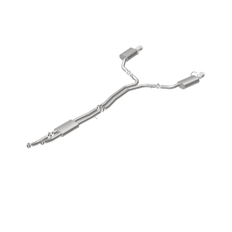 The MagnaFlow 2010-2019 Ford Flex Street Series Cat-Back Performance Exhaust System 16395 brings out the personality of your 3.5L 2010-2019 Ford Flex with our signature resonant, powerful engine tone and dyno-proven performance. Thanks to its fast-flowing, mandrel bent 2.5in. main piping and 3 Straight-Through mufflers ending in a Dual Split Rear exit with 4in. Polished Welded-On Double Wall Angle Cut Folded Edge tips, this Ford Flex exhaust kit has the performance chops to match its sporty sound and appearance. Upgrade your ride to the next level with an exhaust that has the pipes to put other Ford Flex's to shame. With this system your vehicle will be producing Moderate exterior and Mild interior sound levels while leaving other cars and trucks feeling envious at every stoplight. Exhaust kit 16395 features a cat-back layout that replaces your ride's stock exhaust components from near the catalytic converter on back. Extensive 3D scanning during development has resulted in a direct-fit design that you can easily install yourself. 16395 is produced using CNC precision robotic manufacturing techniques and is backed by MagnaFlow's 1-year limited finish warranty and limited lifetime construction warranty.