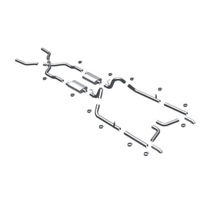 The MagnaFlow 1955-1957 Chevrolet Bel Air Street Series Crossmember-Back Performance Exhaust System 16792 brings enhanced engine sound and dyno-proven performance to your 4.3L, 4.6L 1955-1957 Chevrolet Bel Air with a healthy helping of our deep, resonant signature exhaust note at Moderate exterior and Mild interior sound levels. Thanks to its durable, corrosion resistant stainless steel design, this Chevrolet Bel Air exhaust system will handle whatever tarmac you decide to leave your mark on. This performance exhaust kit features a crossmember-back layout designed to replace your Chevrolet Bel Air's exhaust system from the crossmember on back. With its fast-flowing, mandrel bent 2.5in. main piping and 2 Straight-Through mufflers ending in a Multiple Exit Options exit with 2.75in. Polished Weld-On Single Wall Turndown Cut Edge tips, your muscle car will be sounding as awesome as it looks. Extensive 3D scanning during development has resulted in a direct-fit design that you can easily install yourself. 16792 is produced using CNC precision robotic manufacturing techniques and is backed by MagnaFlow's limited lifetime construction warranty.
