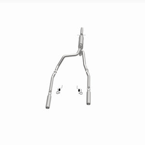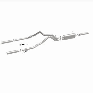 The MagnaFlow 1997-1999 Dodge Dakota Street Series Cat-Back Performance Exhaust System 15735 brings out the personality of your 3.9L, 5.2L, 5.9L 1997-1999 Dodge Dakota with our signature resonant, powerful engine tone and dyno-proven performance. Thanks to its fast-flowing, mandrel bent 3in. main piping and 1 Straight-Through mufflers ending in a Dual Split Rear exit with 3.5in. Polished Clamp-On Single Wall Angle Cut Rolled Edge tips, this Dodge Dakota exhaust kit has the performance chops to match its sporty sound and appearance. Upgrade your ride to the next level with an exhaust that has the pipes to put other Dodge Dakota's to shame. With this system your vehicle will be producing Aggressive exterior and Moderate interior sound levels while leaving other cars and trucks feeling envious at every stoplight. Exhaust kit 15735 features a cat-back layout that replaces your ride's stock exhaust components from near the catalytic converter on back. Extensive 3D scanning during development has resulted in a direct-fit design that you can easily install yourself. 15735 is produced using CNC precision robotic manufacturing techniques and is backed by MagnaFlow's 1-year limited finish warranty and limited lifetime construction warranty.