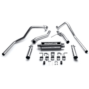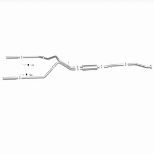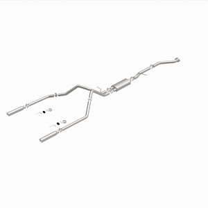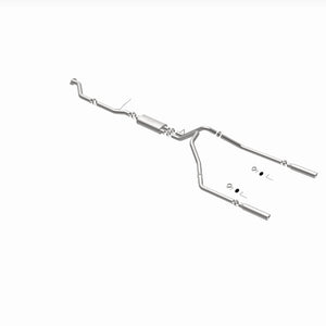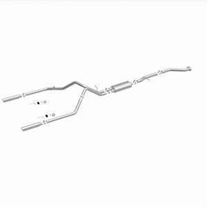 The MagnaFlow Street Series Cat-Back Performance Exhaust System 15754 brings out the personality of your Truck with our signature resonant, powerful engine tone and dyno-proven performance. Thanks to its fast-flowing, mandrel bent 3in. main piping and 1 Straight-Through mufflers ending in a Dual Split Rear exit with 3.5in. Polished Clamp-On Single Wall Angle Cut Rolled Edge tips, this Truck exhaust kit has the performance chops to match its sporty sound and appearance. Upgrade your ride to the next level with an exhaust that has the pipes to put other Truck's to shame. With this system your vehicle will be producing Aggressive exterior and Moderate interior sound levels while leaving other cars and trucks feeling envious at every stoplight. Exhaust kit 15754 features a cat-back layout that replaces your ride's stock exhaust components from near the catalytic converter on back. Extensive 3D scanning during development has resulted in a direct-fit design that you can easily install yourself. 15754 is produced using CNC precision robotic manufacturing techniques and is backed by MagnaFlow's 1-year limited finish warranty and limited lifetime construction warranty.