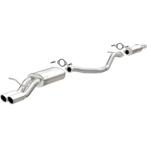 The MagnaFlow Touring Series Cat-Back Performance Exhaust System 15648 is the perfect partner for your 1.8L, 2.0L 1998-2006 Volkswagen to take on a grand tour or a weekend cruise thanks to the powerful, resonant exhaust note and dyno-proven performance it brings to the table. This durable, corrosion resistant stainless steel exhaust kit is engineered to conquer the miles with ease while enhancing your driving experience with Moderate exterior and Mild interior sound levels generated through its fast-flowing, mandrel bent 2.25in. main piping and 2 Straight-Through muffler that terminate in a Dual Straight Driver Side Rear exit with 3in. Polished Welded-On Single Wall Angle Cut Rolled Edge tips. 15648 features a cat-back layout design to replace your import's stock exhaust components from the catalytic converter on back. This Volkswagen exhaust system is compatible with 1998-2006 engines. The use of extensive 3D scans made during the development process has resulted in an easy-to-install, direct-fit design that fits your Volkswagen like a glove. 15648 is produced using CNC precision robotic manufacturing techniques and is backed by MagnaFlow's limited lifetime construction warranty.
