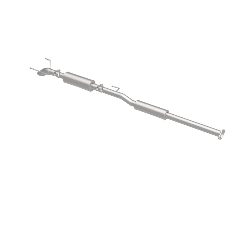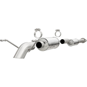 The MagnaFlow 2013-2015 Toyota Tacoma Off-Road Pro Series Cat-Back Performance Exhaust System 17151 brings additional off-roading prowess and our deep signature exhaust note to your 4.0L 2013-2015 Toyota Tacoma with a weight-optimized, dyno-tested, corrosion resistant and durable stainless steel design engineered to closely hug the undercarriage for improved ground clearance. Exhaust kit 17151 is engineered to produce Very Aggressive exterior and Aggressive interior sound levels. Extensive 3D scanning was used during the development of this Toyota Tacoma exhaust system to create a direct-fit design, enabling a do-it-yourself installation process. 17151's emissions-legal cat-back design replaces all your truck's exhaust components from the catalytic converter on back with its 2.5in. diameter mandrel bent main piping that passes through 2 Straight-Through mufflers before ending in a turndown before rear axle exit with 3in. Satin Clamp-On Single Wall Turndown Cut Edge tips. Exhaust system 17151 is produced using advanced CNC precision robotic manufacturing techniques and backed by MagnaFlow's limited lifetime warranty.