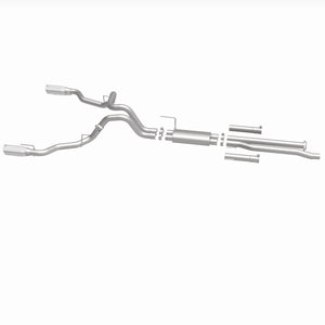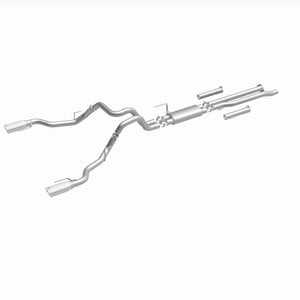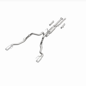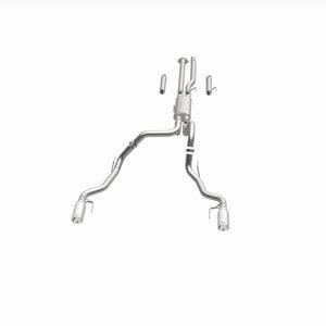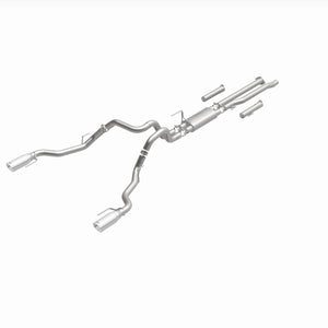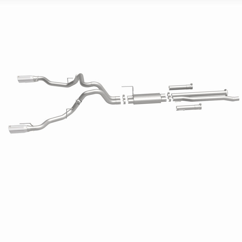 The MagnaFlow 2017-2020 Ford F-150 Street Series Cat-Back Performance Exhaust System 19346 brings out the personality of your 3.5L 2017-2020 Ford F-150 with our signature resonant, powerful engine tone and dyno-proven performance. Thanks to its fast-flowing, mandrel bent 3in. main piping and 1 Straight-Through mufflers ending in a Dual Split Rear exit with 5in. Polished Welded-On Double Wall Angle Cut Rolled Edge tips, this Ford F-150 exhaust kit has the performance chops to match its sporty sound and appearance. Upgrade your ride to the next level with an exhaust that has the pipes to put other Ford F-150's to shame. With this system your vehicle will be producing Aggressive exterior and Moderate interior sound levels while leaving other cars and trucks feeling envious at every stoplight. Exhaust kit 19346 features a cat-back layout that replaces your ride's stock exhaust components from near the catalytic converter on back. Extensive 3D scanning during development has resulted in a direct-fit design that you can easily install yourself. 19346 is produced using CNC precision robotic manufacturing techniques and is backed by MagnaFlow's 1-year limited finish warranty and limited lifetime construction warranty.