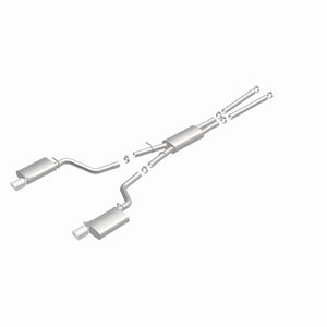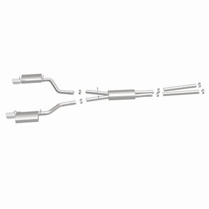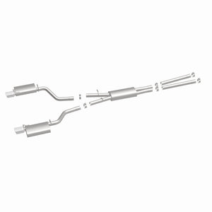 The MagnaFlow Street Series Cat-Back Performance Exhaust System 15628 brings out the personality of your 5.7L 2005-2010 Dodge with our signature resonant, powerful engine tone and dyno-proven performance. Thanks to its fast-flowing, mandrel bent 2.5in. main piping and 3 Straight-Through mufflers ending in a Dual Split Rear exit with 4in. Polished Welded-On Double Wall Angle Cut Rolled Edge tips, this Dodge exhaust kit has the performance chops to match its sporty sound and appearance. Upgrade your ride to the next level with an exhaust that has the pipes to put other Dodge's to shame. With this system your vehicle will be producing Moderate exterior and Mild interior sound levels while leaving other cars and trucks feeling envious at every stoplight. Exhaust kit 15628 features a cat-back layout that replaces your ride's stock exhaust components from near the catalytic converter on back. Extensive 3D scanning during development has resulted in a direct-fit design that you can easily install yourself. 15628 is produced using CNC precision robotic manufacturing techniques and is backed by MagnaFlow's 1-year limited finish warranty and limited lifetime construction warranty.