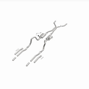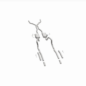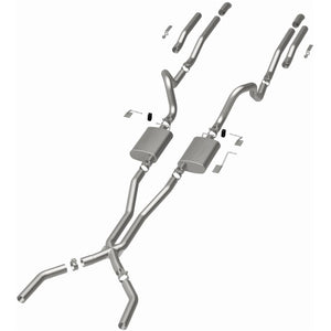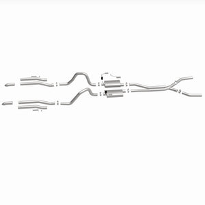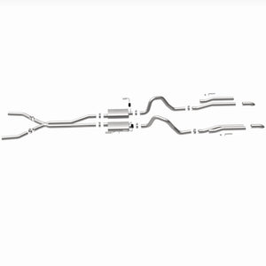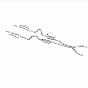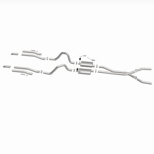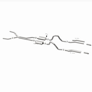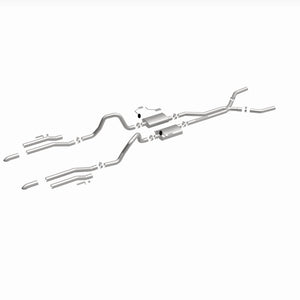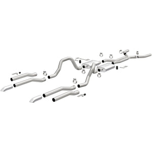The MagnaFlow Street Series Crossmember-Back Performance Exhaust System 19303 19303 brings enhanced engine sound and dyno-proven performance to your muscle car with a healthy helping of our deep, resonant signature exhaust note at Moderate exterior and Mild interior sound levels. Thanks to its durable, corrosion resistant stainless steel design, this exhaust system will handle whatever tarmac you decide to leave your mark on. This performance exhaust kit features a crossmember-back layout designed to replace your exhaust system from the crossmember on back. With its fast-flowing, mandrel bent 2.5in. main piping and 2 Straight-Through mufflers ending in a Dual Split Rear exit with 2.625in. Polished Weld-On Single Wall Turndown Cut Edge tips, your muscle car will be sounding as awesome as it looks. Extensive 3D scanning during development has resulted in a direct-fit design that you can easily install yourself. 19303 is produced using CNC precision robotic manufacturing techniques and is backed by MagnaFlow's limited lifetime construction warranty.
