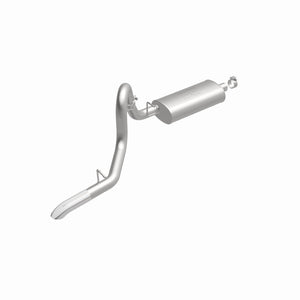 The MagnaFlow 1997-1999 Jeep Wrangler Street Series Cat-Back Performance Exhaust System 15854 brings out the personality of your 2.5L, 4.0L 1997-1999 Jeep Wrangler with our signature resonant, powerful engine tone and dyno-proven performance. Thanks to its fast-flowing, mandrel bent 2.5in. main piping and 1 Straight-Through mufflers ending in a Single Straight Passenger Side Rear exit with 2.75in. Polished Welded-On Single Wall Turndown Cut Edge tips, this Jeep Wrangler exhaust kit has the performance chops to match its sporty sound and appearance. Upgrade your ride to the next level with an exhaust that has the pipes to put other Jeep Wrangler's to shame. With this system your vehicle will be producing Moderate exterior and Mild interior sound levels while leaving other cars and trucks feeling envious at every stoplight. Exhaust kit 15854 features a cat-back layout that replaces your ride's stock exhaust components from near the catalytic converter on back. Extensive 3D scanning during development has resulted in a direct-fit design that you can easily install yourself. 15854 is produced using CNC precision robotic manufacturing techniques and is backed by MagnaFlow's 1-year limited finish warranty and limited lifetime construction warranty.