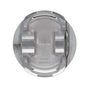 2618 Alloy Forgings: We use domestic 2618 alloy forgings, ensuring superior strength and performance.Chrome Moly Wrist Pins: Premium Chrome Moly wrist pins come standard with our Standard Series Pistons. For select SKUs, we offer wrist pin upgrades to 9310 and Turbo Tuff/DLC alloys, providing additional durability.Exacting Ring Lands and Grooves: We adhere to strict standards for piston ring lands and grooves, resulting in enhanced ring seal and more power.Cam and Barrel Profiles: Our pistons boast cam and barrel (skirt) profiles that generate substantial power while being gentle on cylinder walls.Unique Fixturing: Manley's unique fixturing allows for skirt turning and ring groove machining in a single operation, ensuring ultimate ring groove to skirt squareness.