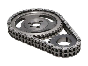 Fully machined steel crankshaft sprocket with three keyways enabling different settings: -4, 0, or +4 degrees of timingCast camshaft sprocket machined for Torrington thrust bearingRoller chain designed with .250" diameter rollersKit includes captive Torrington bearing, roller thrust button, and Manley camshaft lock