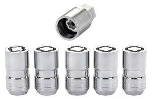 Protecting the world's finest wheels and tires from theft since 1964.; McGard manufactures wheel locks in the USA to meet or exceed O.E.M.; standards for safety and durability.; Presently, McGard is an Original Equipment wheel lock supplier to most automobile brands around the world.; These easy-to-use, one-piece wheel locks function like regular lug nuts, but require a special key tool for installation and removal.; The steel collar on the user friendly key guides the key into the lock pattern.; The collar holds the key in alignment for easy installation and removal.; The computer generated key designs allow for an infinite number of key patterns.; The extra narrow pattern groove on the lock resists the intrusion of removal tools into the pattern.; Every McGard wheel lock is fully machined from restricted chemistry steel made specifically for McGard and through-hardened for its unsurpassed level of security.; McGard's plating process includes several layers of nickel and one layer of microporous chrome producing a superior finish while protecting against rust.; For use on sport/utility vehicles with O.E.M.; rear mount spare tire carrier.; One lock for spare, four locks for road wheels, one matching key.; This product may contain globally sourced materials/components.