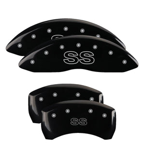 MGP 4 Caliper Covers Engraved Front & Rear Classic/SS Black finish silver ch - 14027SSSCBK