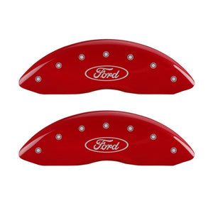 MGP Front set 2 Caliper Covers Engraved Front Oval logo/Ford Red finish silver ch - 10234FFRDRD