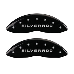 MGP Front set 2 Caliper Covers Engraved Front Silverado Black finish silver ch - 14207FSILBK